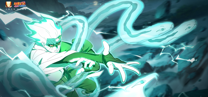 2、待一技能图标恢复三条查克拉蛇后,用二技能抓取敌人再接一技能,触发追加组合技 “蛇御雷・超” 持续输出伤害,最后以奥义收尾补伤。