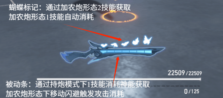 加农炮模式:原地放置一个加农炮 加农炮会自动攻击 可以消耗蝴蝶标记回复神能