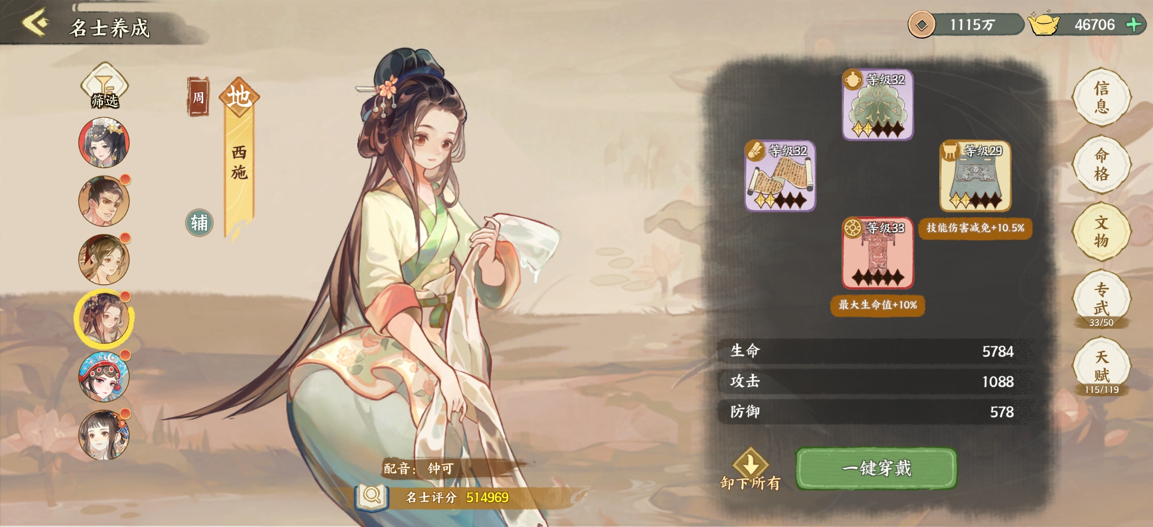 西施文物就比较随意了,带马王堆帛画是为了增加西施生存能力,防止没放技能先死了。