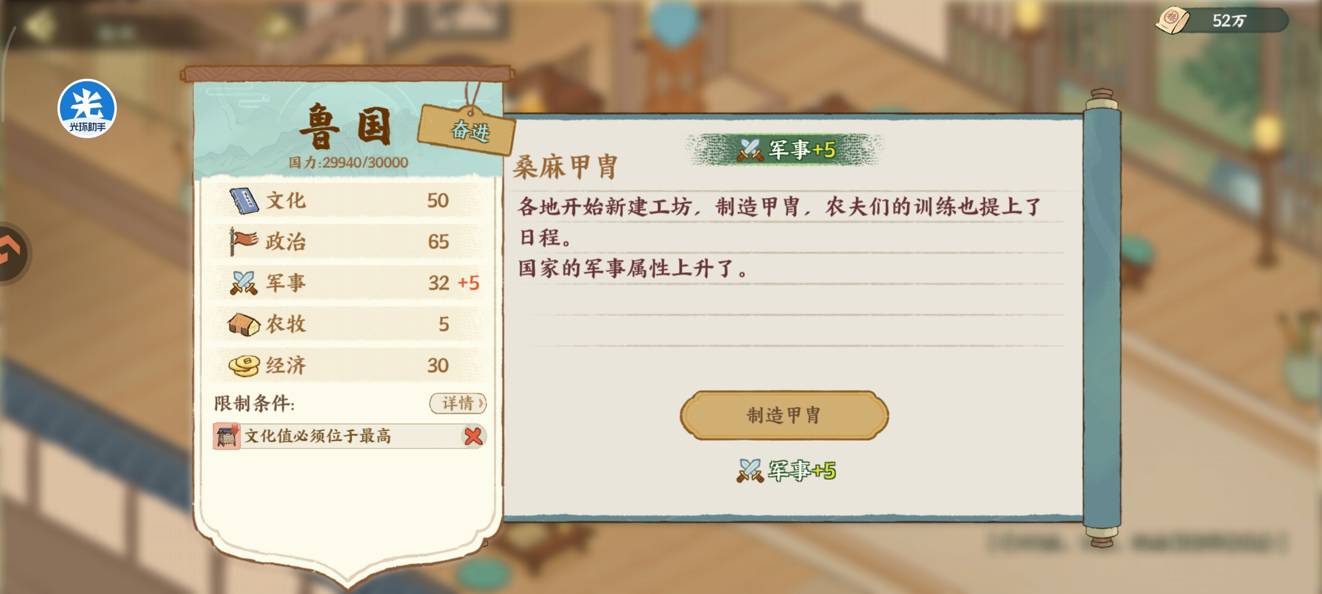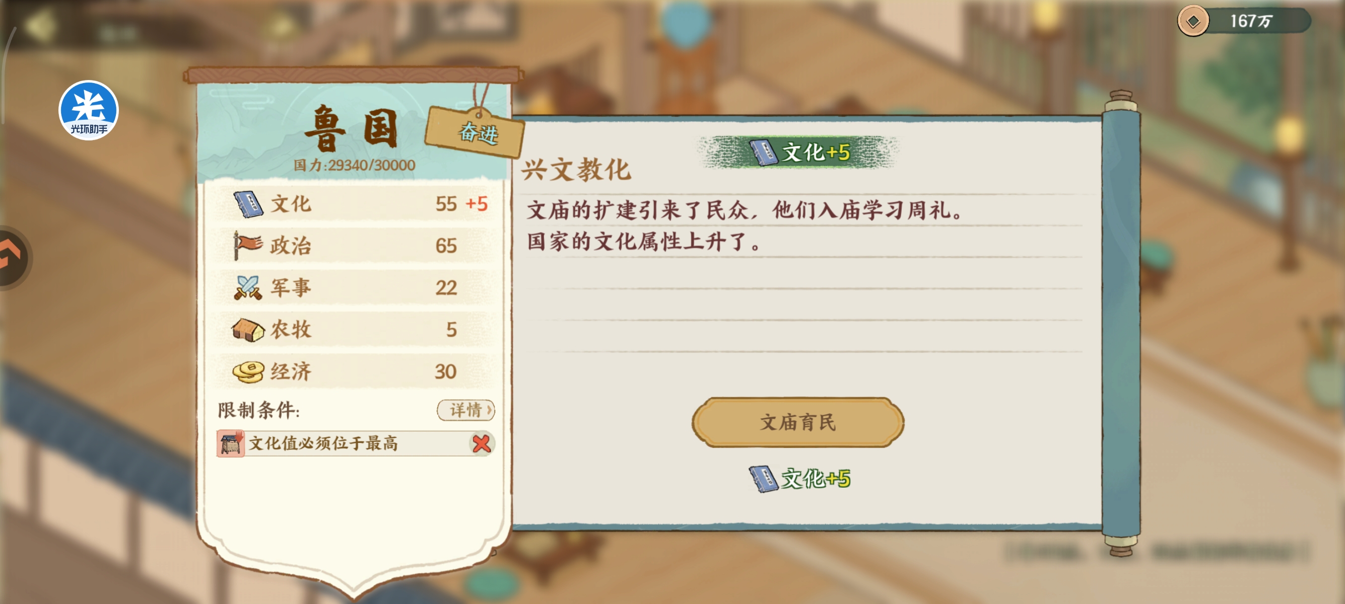 华夏绘世录贤哉,回也!还请助寡人理政。【鲁国政务选择】如下: