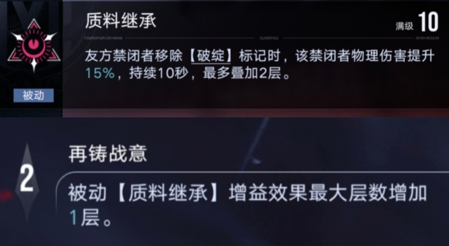 诺克斯重构后被动由原本的防御降低变为了受到物理伤害提升。跟摩尔虽不是一个乘区,但操作简单,获取简单,数值也都在40%。是很好的平替角色。