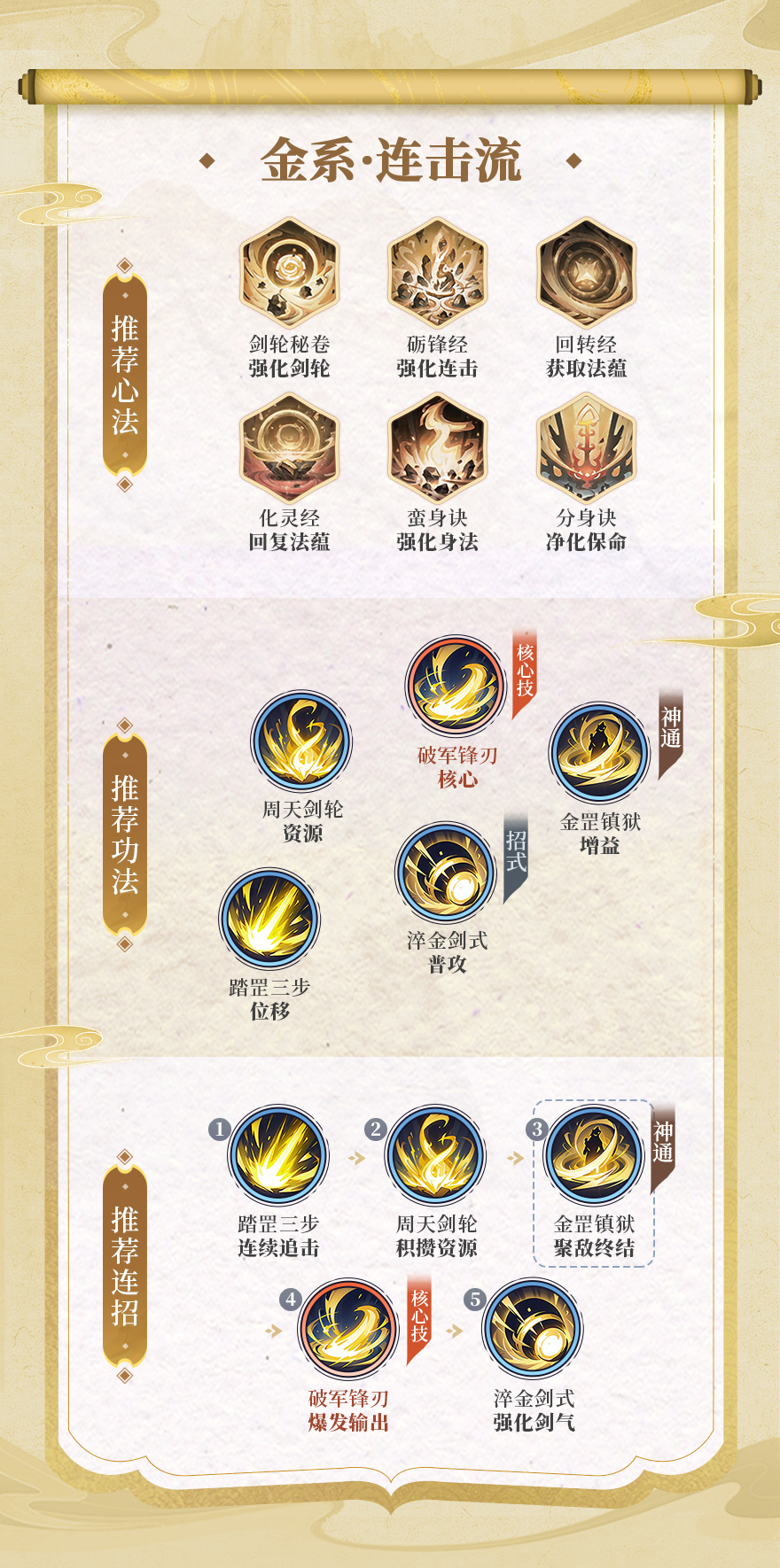 金系 · 连击流:节奏紧凑,追击能力强,适合喜欢贴身快攻的仙友。