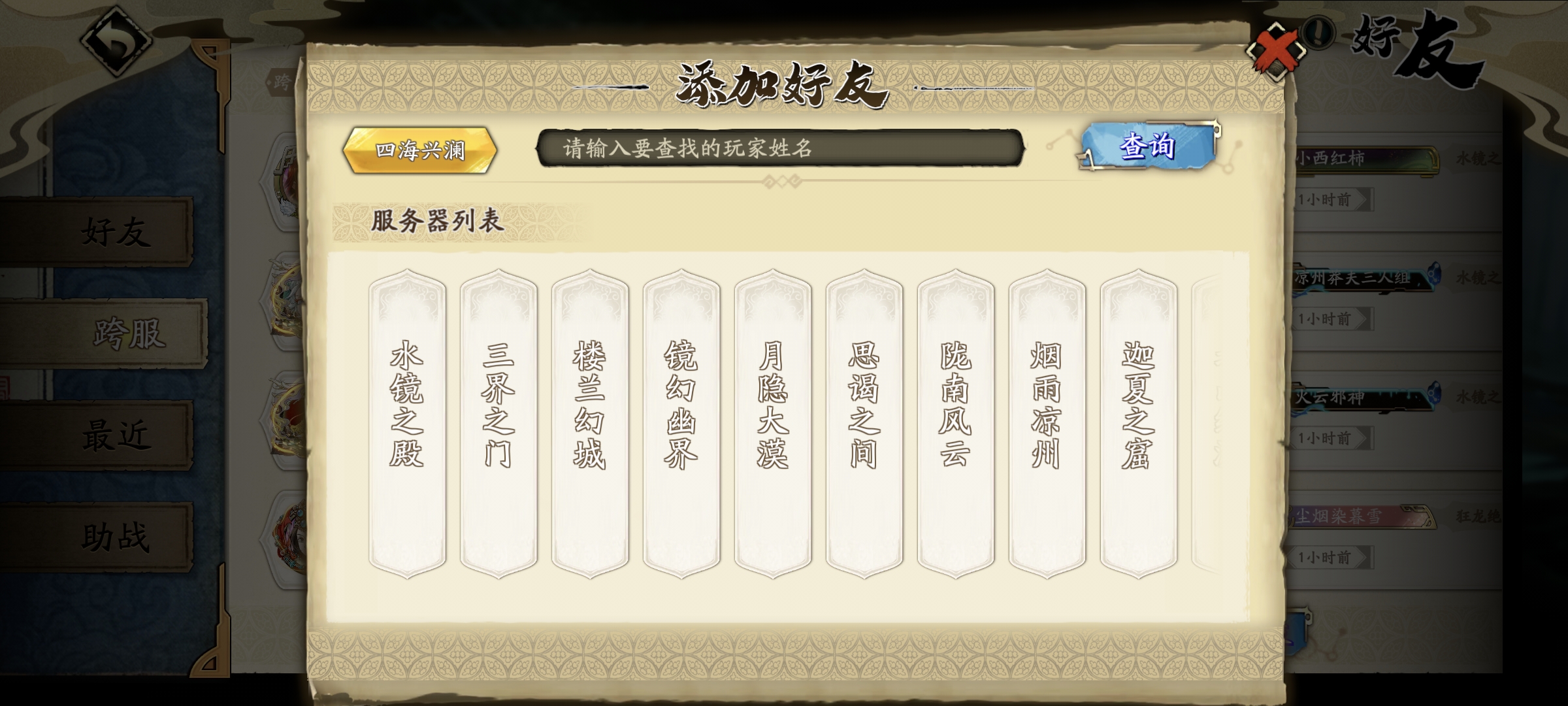 入坑第一天,去水镜之殿之类的前几个老区选一个进,花些时间开个号,把排行榜的各种ID截图下来,回到自己的区开始加好友。这会花一些时间,但并不是什么南辕北辙。可能这两个小时其它人都打了十几关了,不要紧。把大佬填满自己的好友栏,利用顶级养成的各种助战角色无脑推图,速度会比同区其它没大佬好友的人快几十倍,轻松不费脑