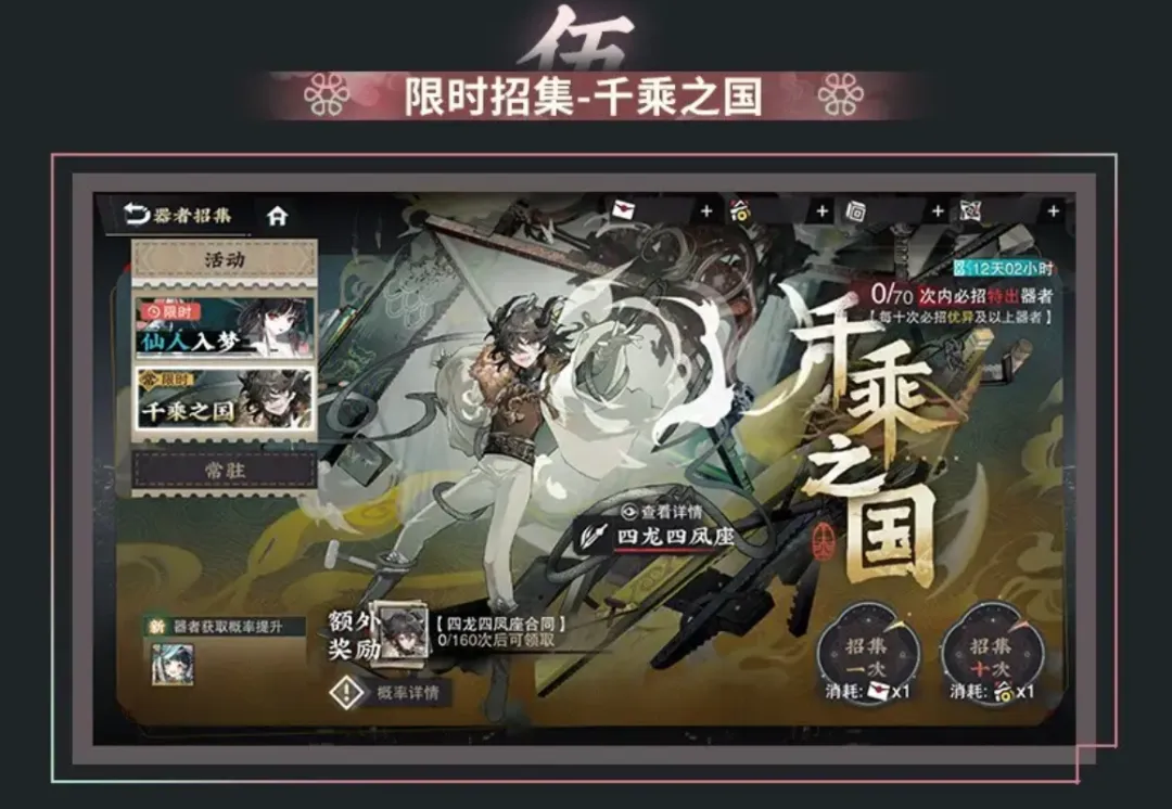 器者招募这个每天慢慢攒人品的环节中,0.8%的概率出红色器者,其中1/4的概率是四龙四凤,所以理论上只要大家玩的够久,四龙四凤都是可以随到的,不过在眼下就算是这个照面随到了四龙四凤,其实意义也不大了,因为后期的四龙四凤真心是比较乏力的,那么为什么他会出现这种后劲不足的尴尬情况呢?主要原因有如下几条: