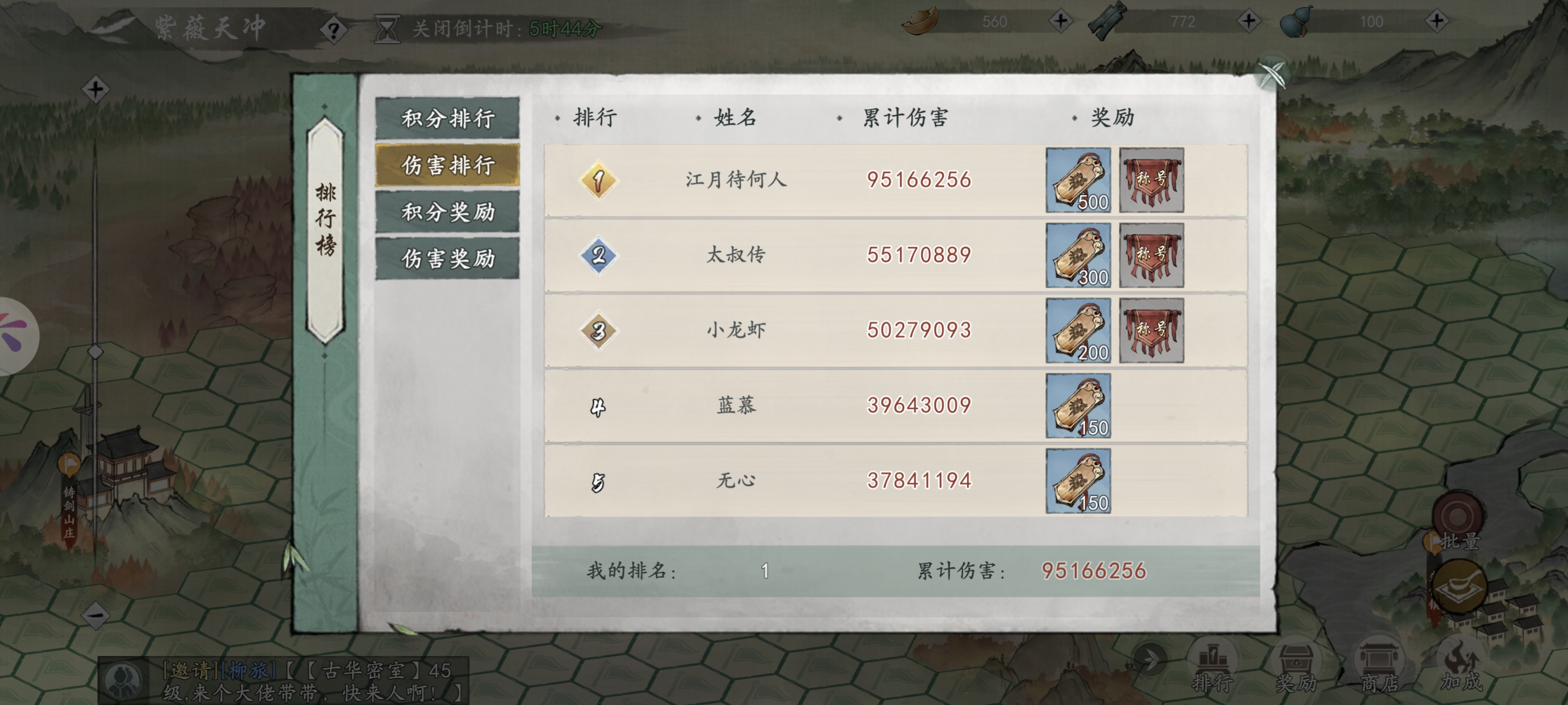 第一天开启活动后,召集帮派成员,抢首杀,可以获得大量积分,因为每个怪都是在固定回合里必须打死,也就是对输出有了要求,前期可以推荐氪佬的唐门暗器,天山连击剑,天山刀,平民的血气棍,武当阵法,前期伤害都不低,新出的峨眉剑,人海战术,低战开地图,高战打大殿,首杀怪。