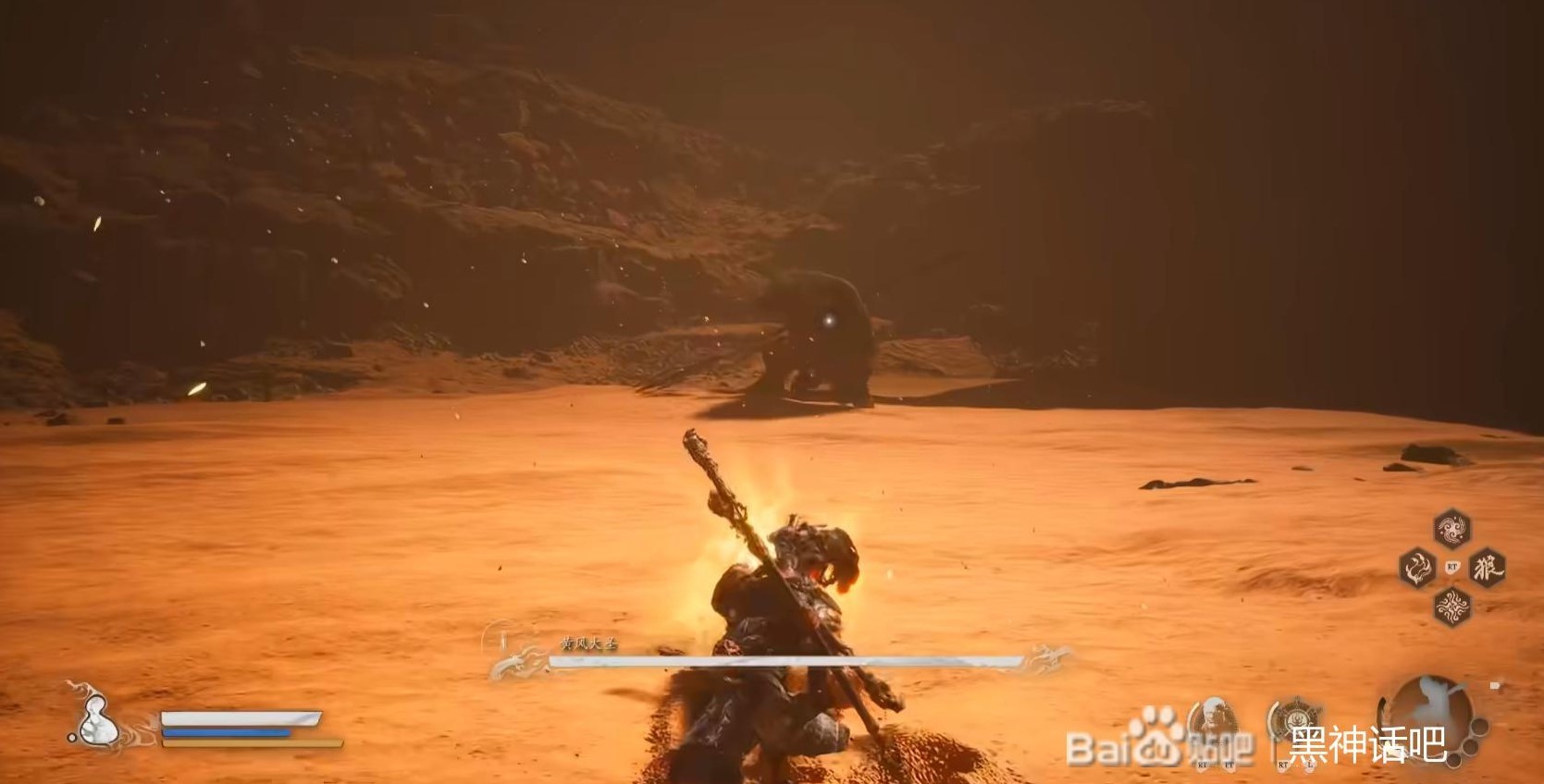 期间它会开始挥舞手中的戟,然后我们期间攻击的话不会打断它,它会跑出沙壁,然后变成一道黄沙虚影,手握金光向我们冲来。我们直接就是一起冲到它面前,要释放金光时,我们就向右边躲开。亦或者是直接使用出聚气化形,然后就能躲开,记得释放完金光后它还会接连的挥舞着手中的武器。之后会出现第二道虚影,会跳跃斜着劈向我们。向左右两边躲开即可,然后最后就是真身向我们踩过来。