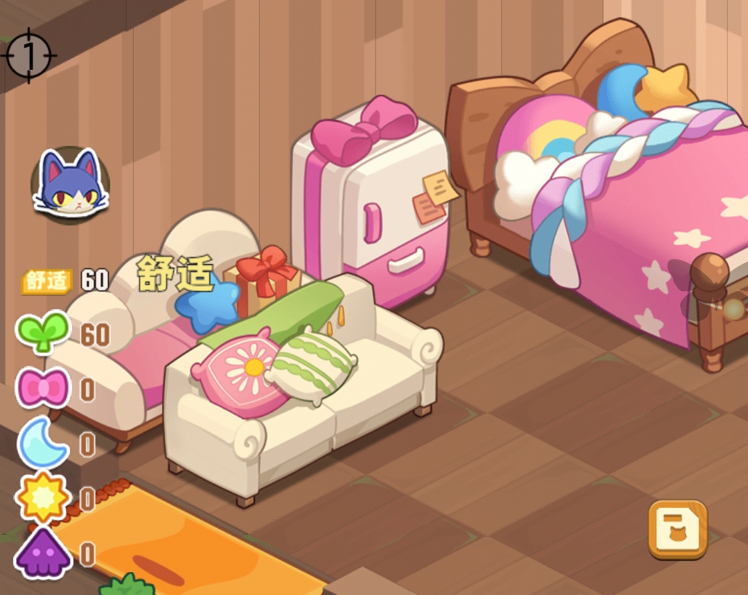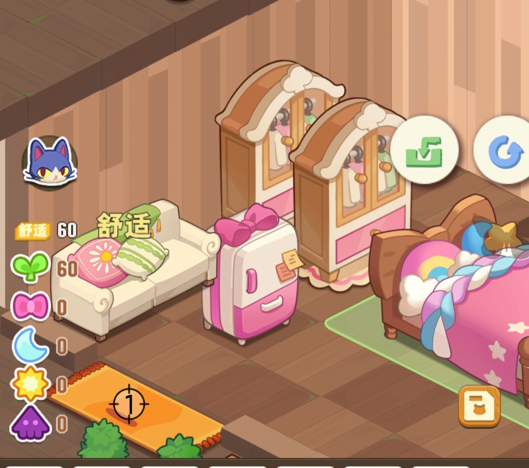 礼花不够不想买那么多家具的,只要床和其他活力属性家具很容易就可以3星,能够邀请到紫色动物合乐啦。
