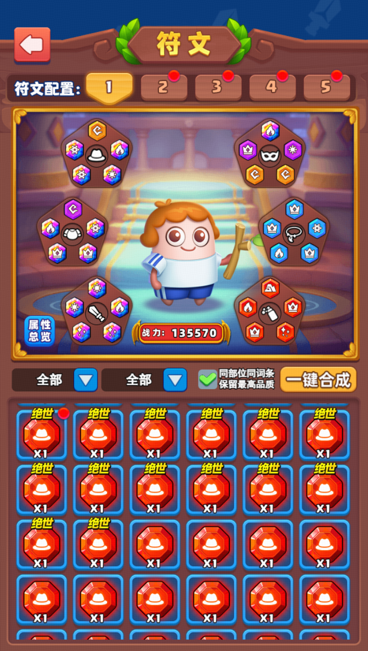 (2)每6个同品质同部位符文,可合成为同部位高一品质的随机符文;