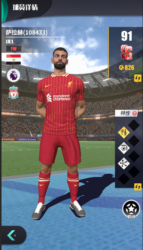 其次是法老萨拉赫,在游戏中评分高达91,是目前利物浦阵中评分较高的前锋球员。其球员特性包括:高级精准制导,穿云箭等技能。高级精准指导是球员擅长通过预判守门员重心与球门死角分布,在射门前完成轨迹校准,如同导弹锁定目标般精准打击,使射门成功率提高2.4%。死角锁定是指有着出色脚法的点球罚球手,主罚点球时,提升自身最高一项属性的3.%,用于计算传球成功率。萨拉赫在利物浦阵中是十分关键的角色,无论是出色的突破能力,还是精准的射门能力,都给利物浦带来了巨大的帮助。