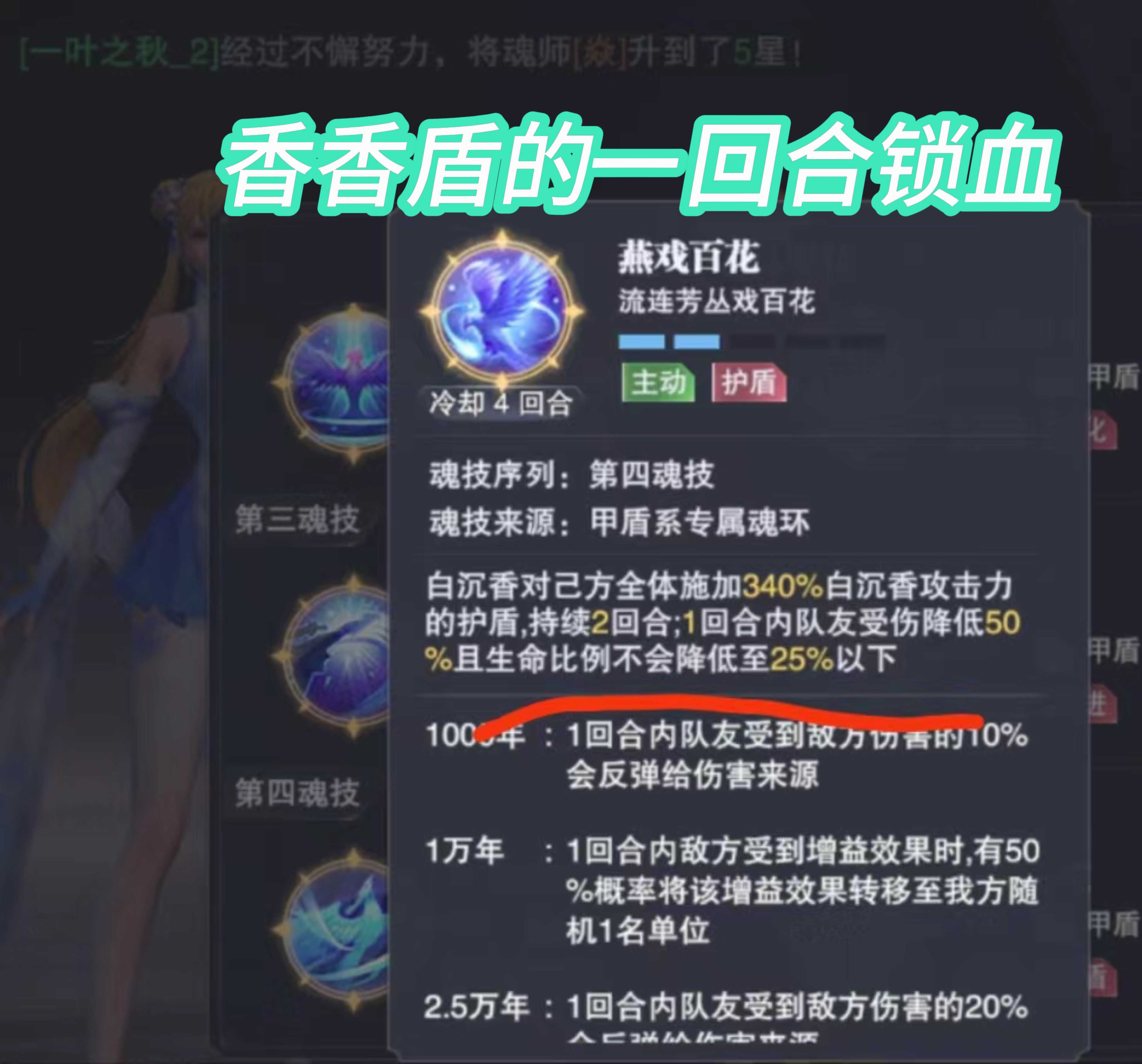香香4的盾:放出后在香香下一个回合结束前,队友有不死,但香香自己还是会死的,而且自己死后队友的不死就没了。