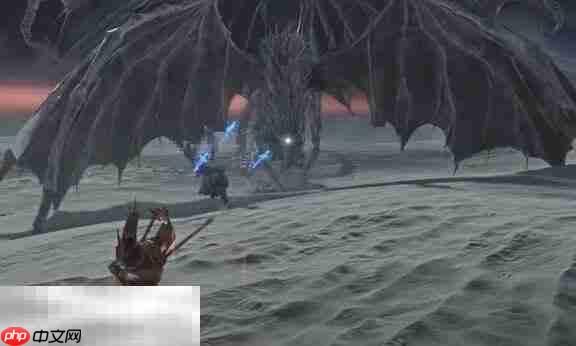 道具协同:龙起飞瞬间投掷火焰壶命中其腹部;在Boss陷入振奋香导致的硬直期间,全队集中火力强攻。