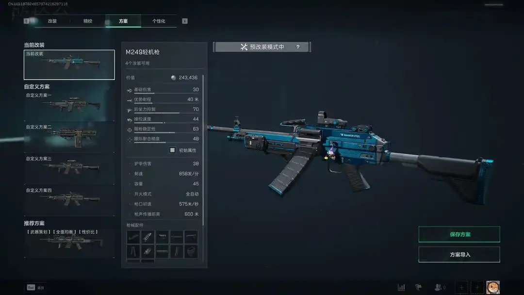 三角洲行动《三角洲》仅需 10w 巨好用的 M249 改枪推荐,助力 3x3 保险任务如下: