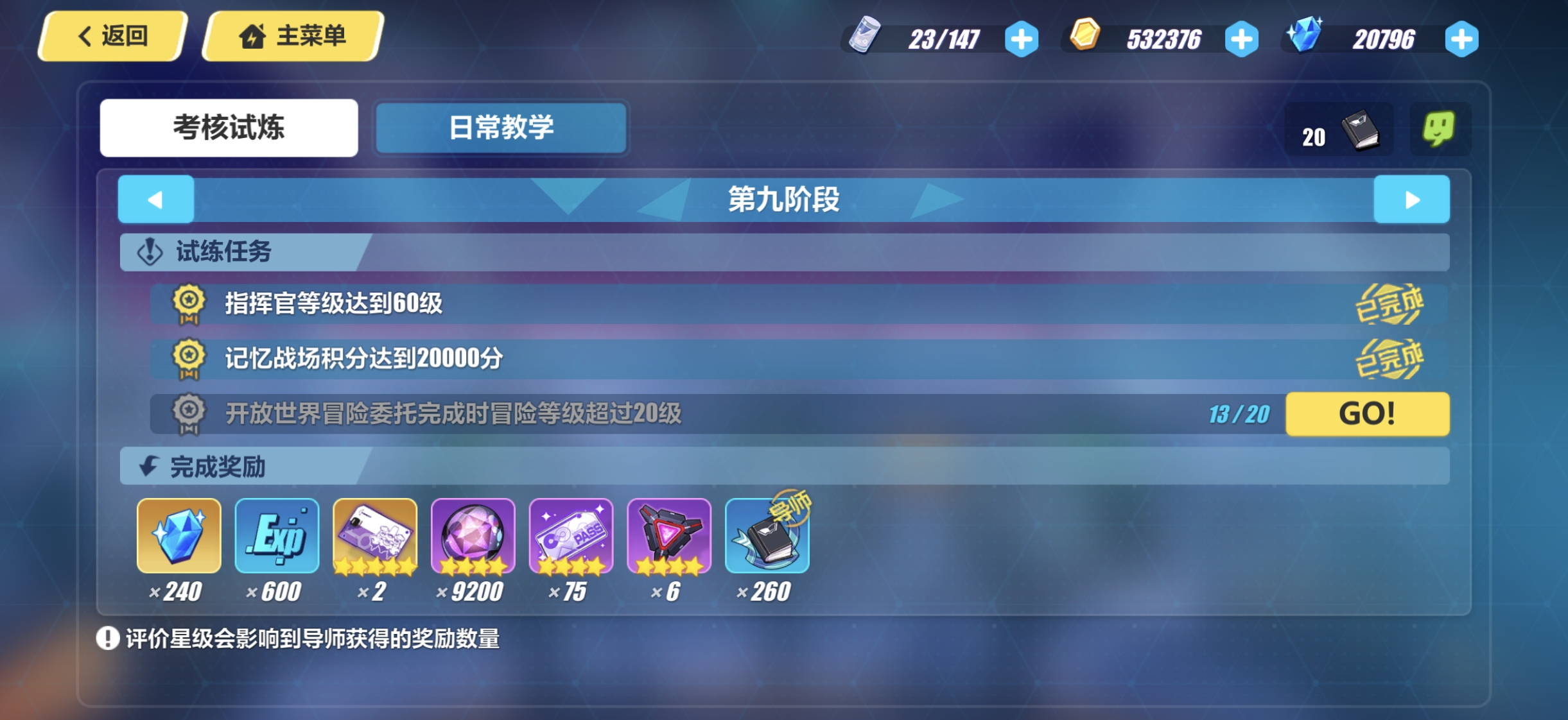 ❸开放世界:樱色轮回和天命总部分为剧情任务和伙伴任务。后崩坏书里为剧情奖励、补给奖励、挑战奖励。