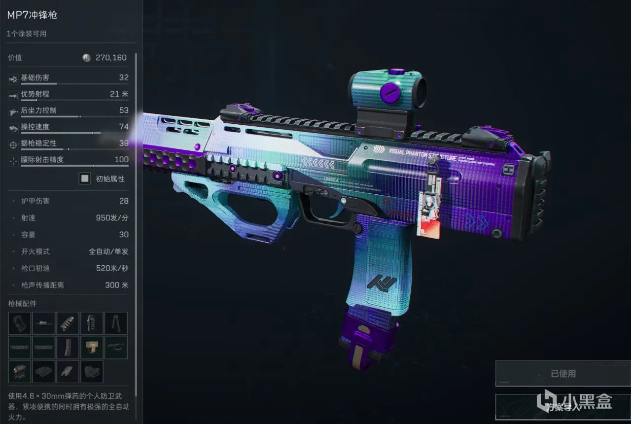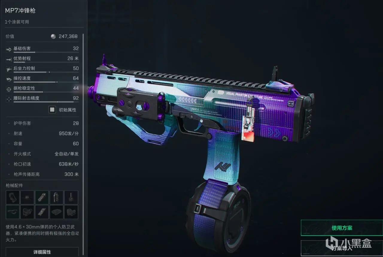 腰射叠到132,近距离无需开镜,开镜情况下操速也是非常敏捷的,但射程较短,mp7伤害衰减很厉害,尽量打优势射程以内。