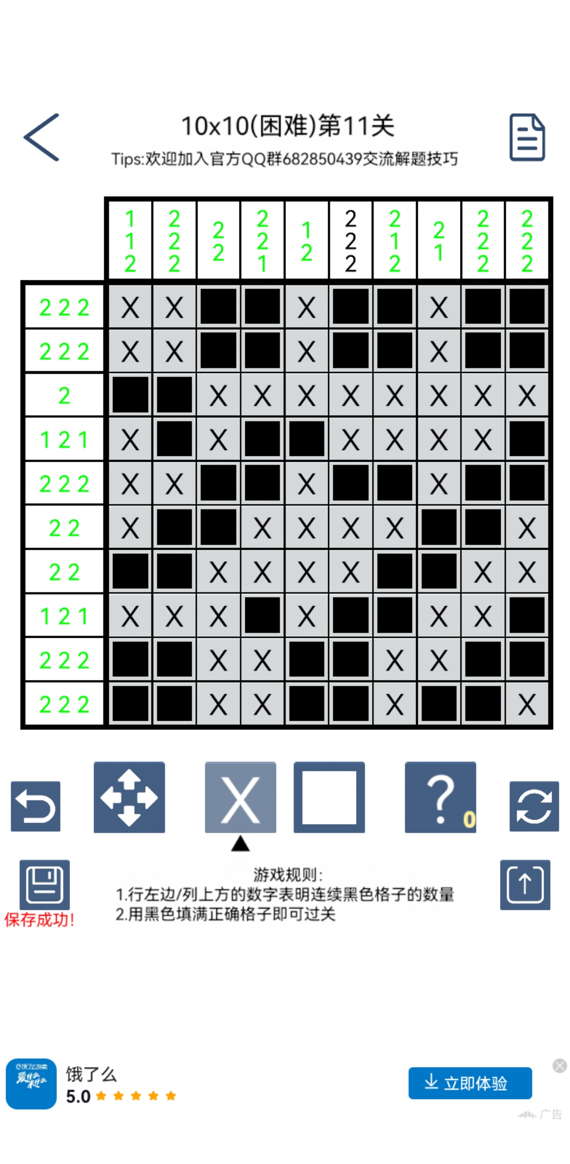 以数织图Nonogram1010(困难)第11关的恩怨情仇如下: