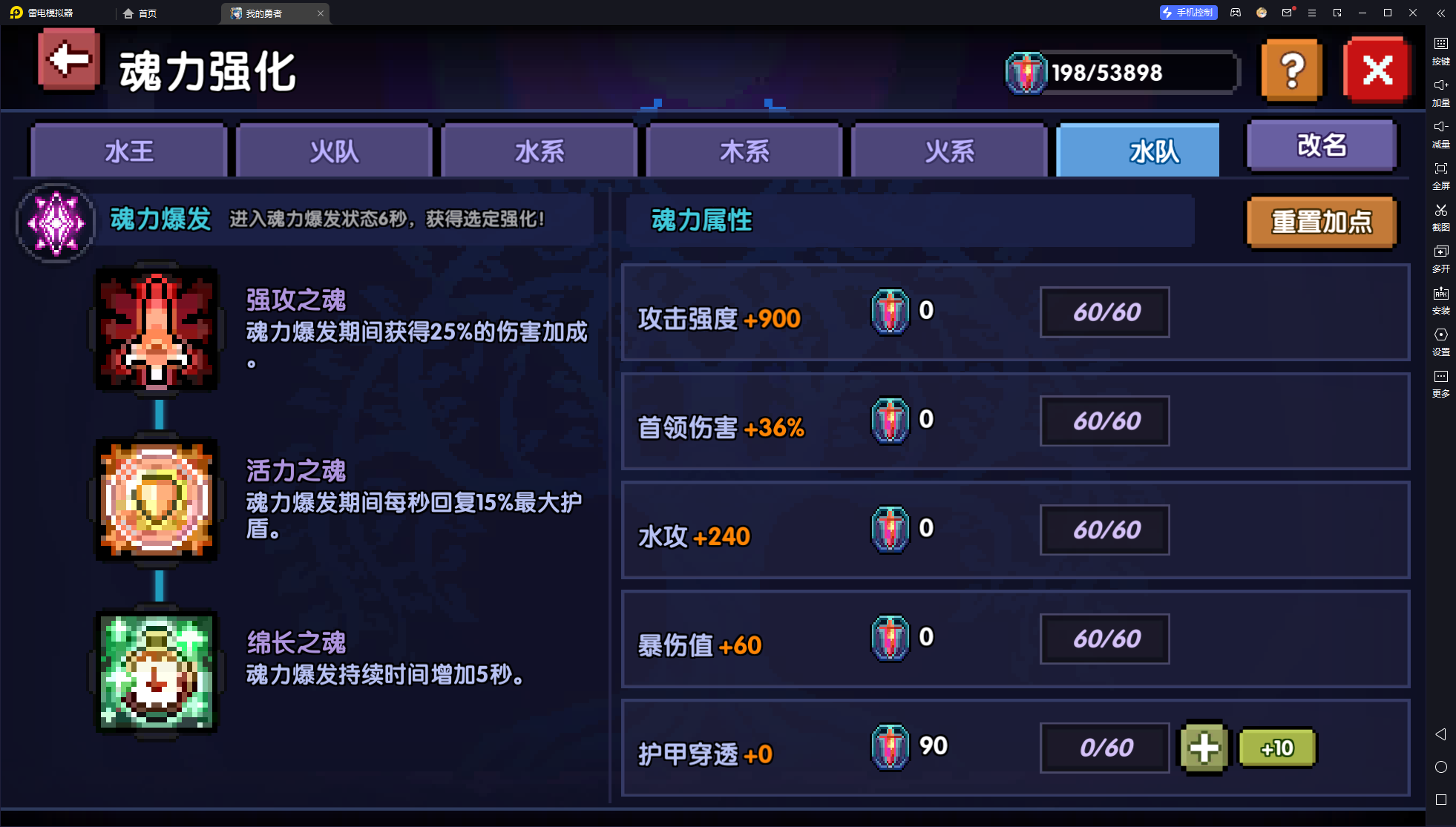 魂力攻强首伤水攻爆伤点满,其余属性按照面板自选调配