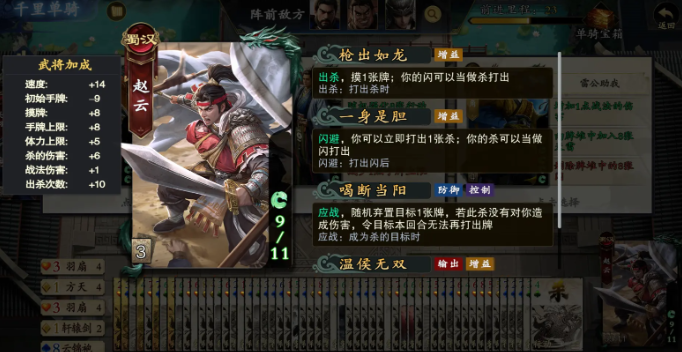 七进七出:赵云核心技能,可叠加提升出杀次数、手牌上限