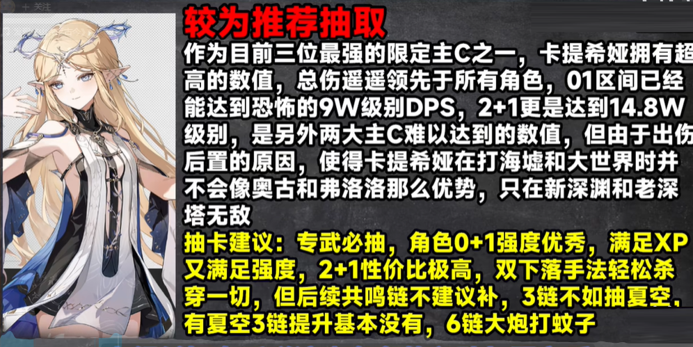 2. 卡提希娅:未来高DPS主C,建议先观望