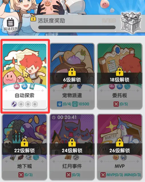 通过主界面【玩法】-【自动探索】即可开启你的轻松冒险之旅。