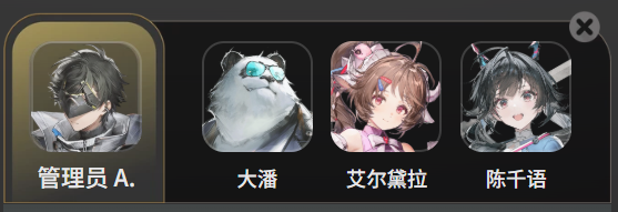 1、阵容组成:管理员、大潘、艾尔黛拉、陈千语