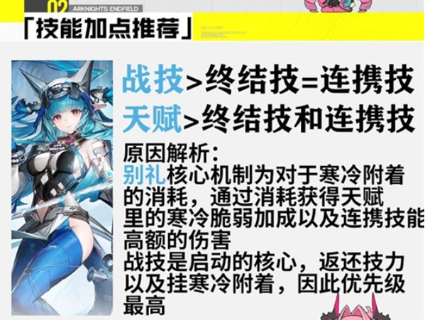 战技承担了挂寒冷附着与返还技力的职责,是整个输出循环的启动核心,因此优先级最高。终结技与连携技属于核心爆发手段,同步提升即可。
