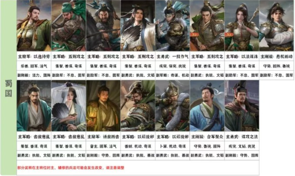 整体从副兵法中获益颇多,特别是谋略大C诸葛亮、庞统、姜维等都有明显的伤害增长。刘关张和马超等主流阵容也能获得稳定伤害增幅。