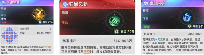 按需选择即可。追求单体高伤选天谴神雷,风系群伤优先狂岚风劲,主玩水系则拉激流水势(群伤+控制);