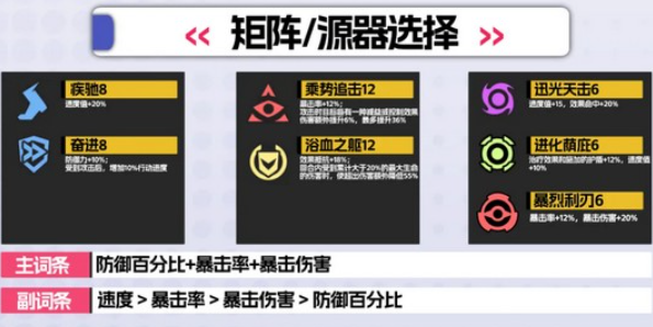 副词条:速度暴击率暴击伤害防御百分比
