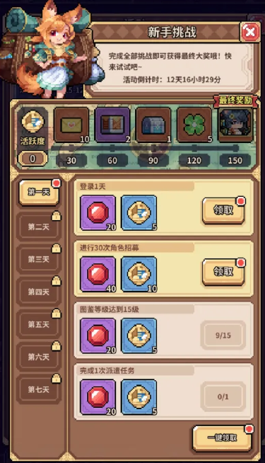 2、最终大奖:解锁橙色角色・异界旅人,完成招募、图鉴升级、派遣等简单任务即可逐步领取。