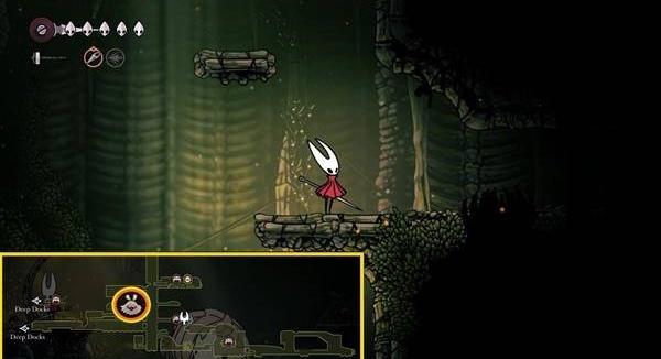 这个空心骑士:丝歌失落的跳蚤也在深码头地区。您必须进一步推进战役,直到从神社获得 Swift Step 力量。一旦你拥有它,利用你新发现的空中冲刺能力到达同一房间的左上角。