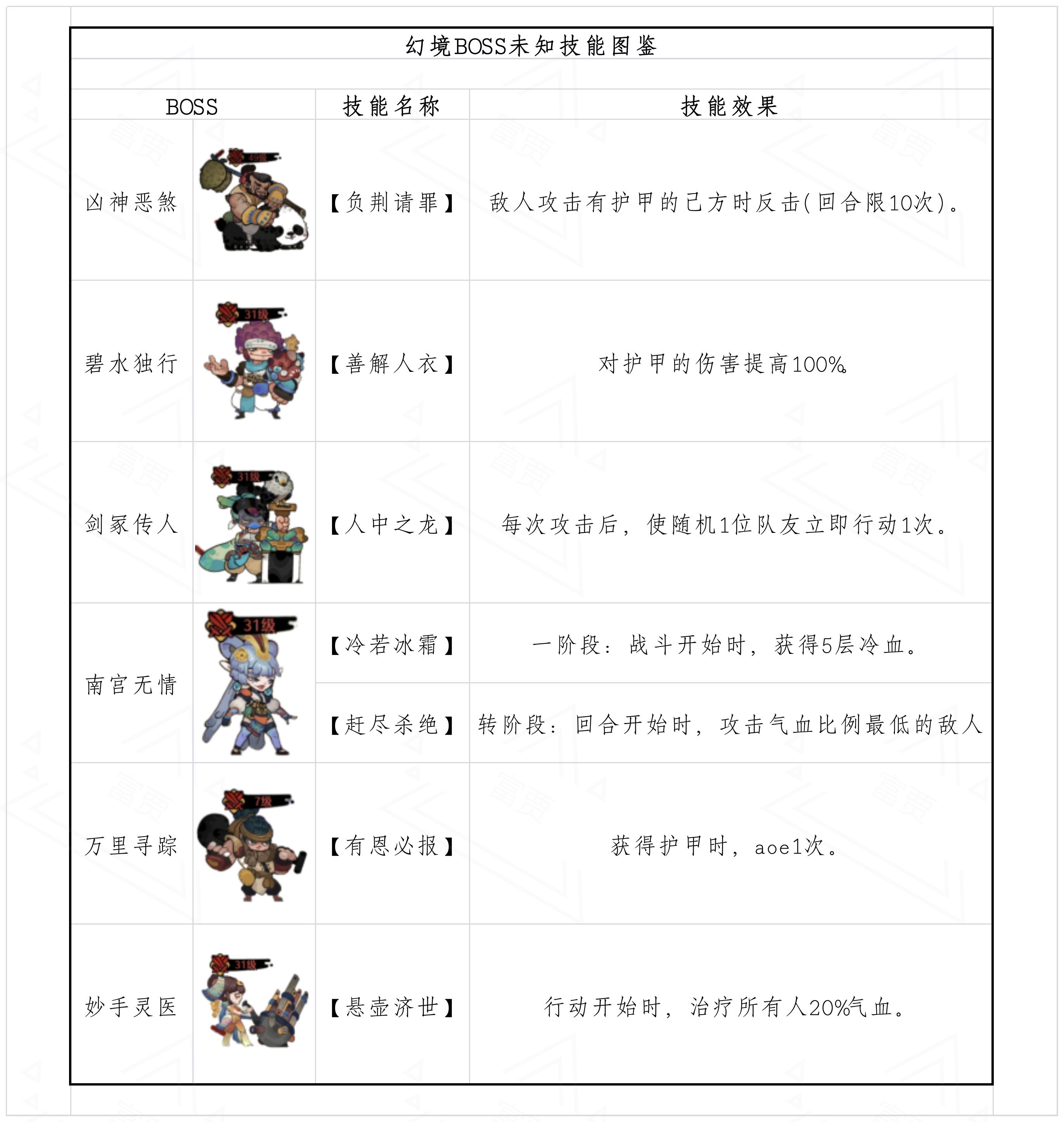 古今2-风起蓬莱【幻境宝典1】幻境BOSS未知技能效果 与 装备前缀词条图鉴如下: