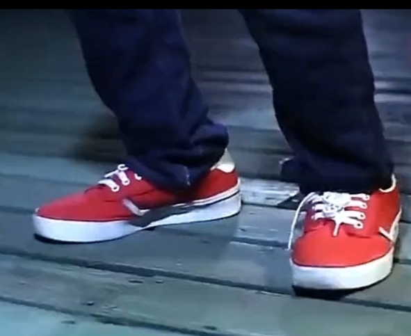 值得一提的是,原歌曲MV里的滑板鞋是红色的。