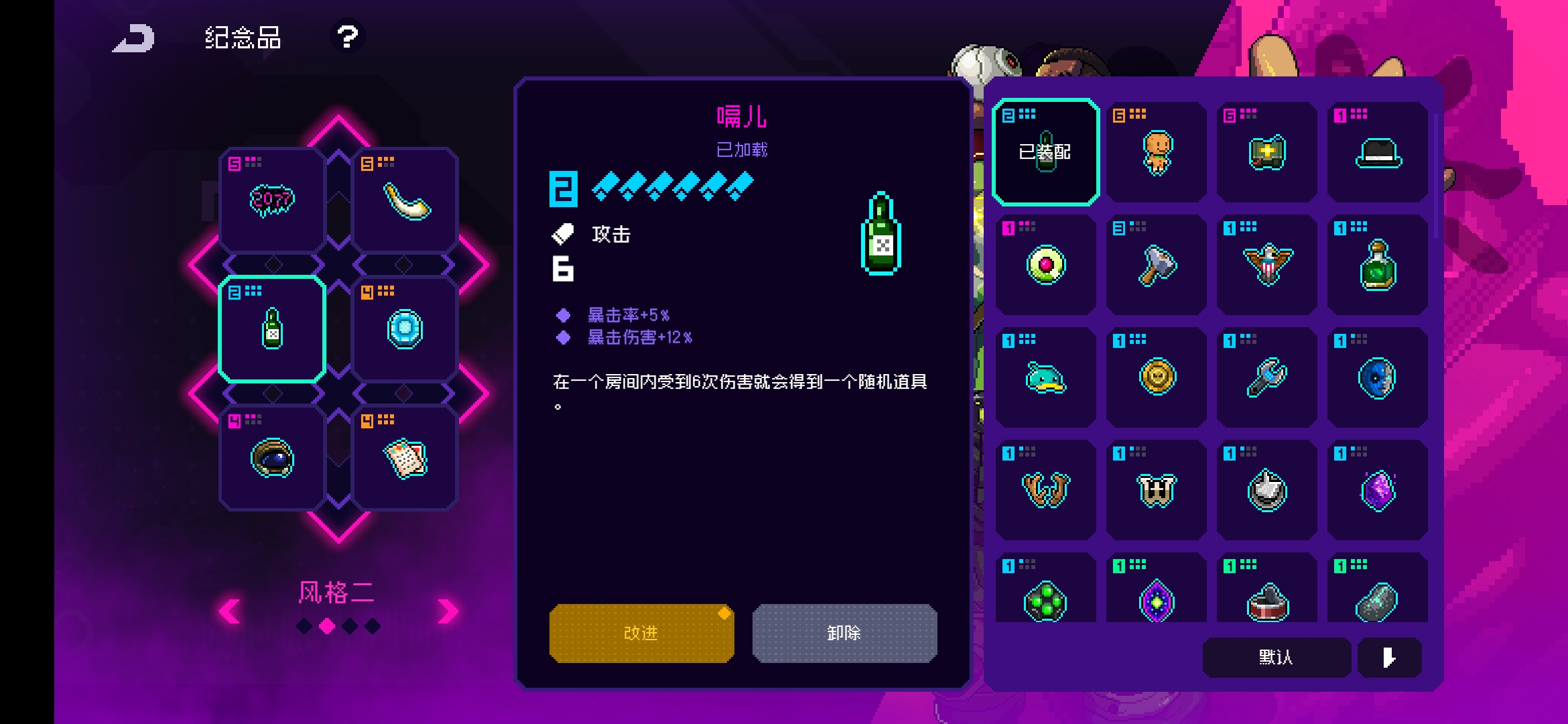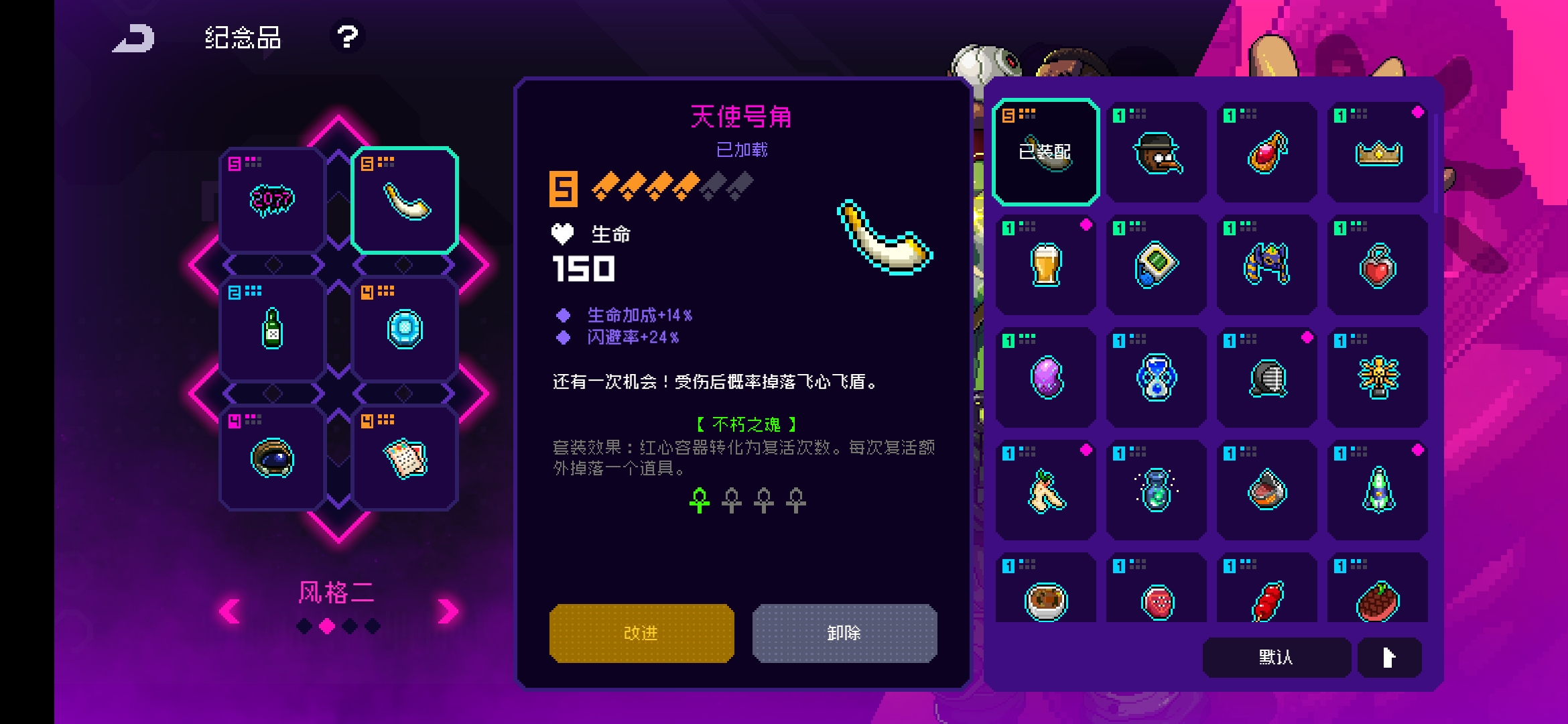 2,初始带的纪念品路线选择性更强,可以选择嗝儿流或者护盾加成流等等