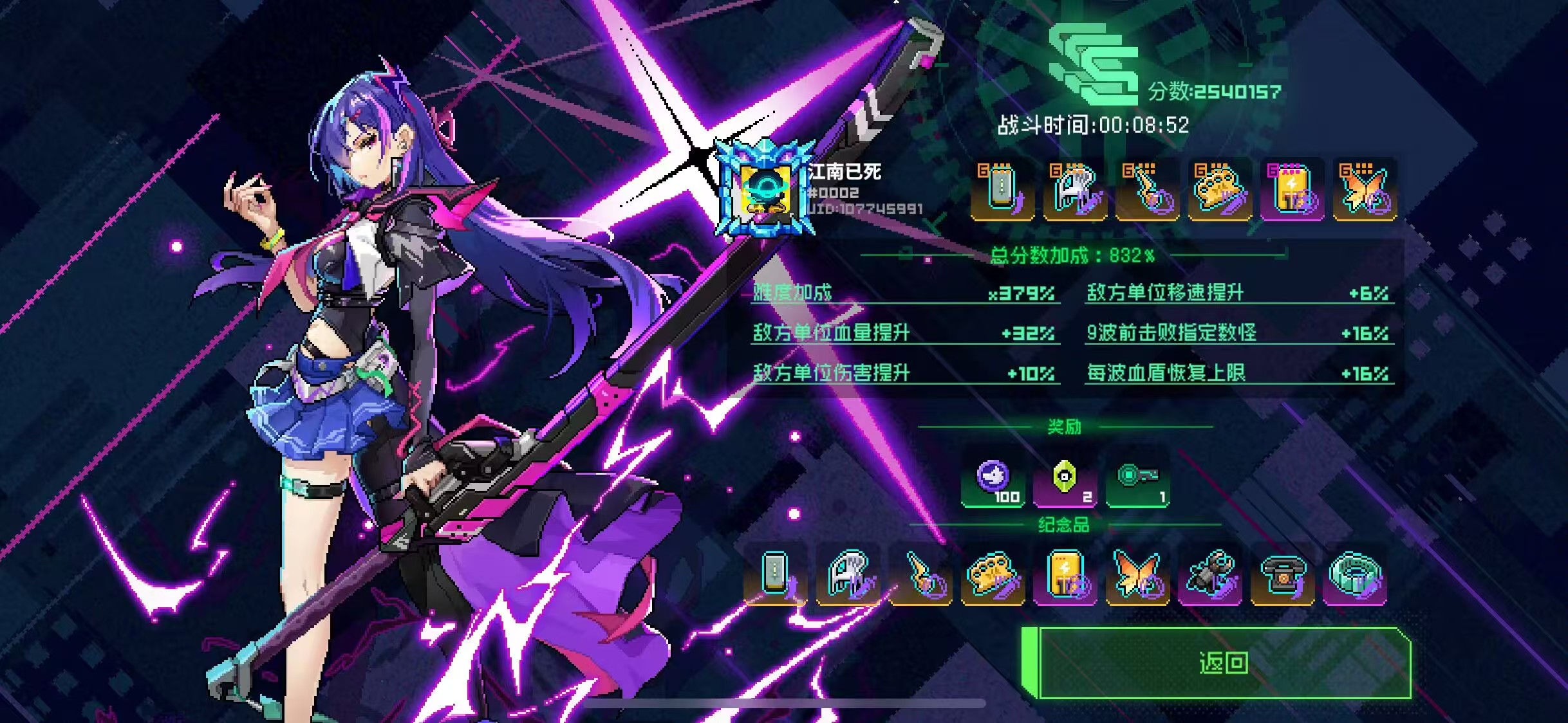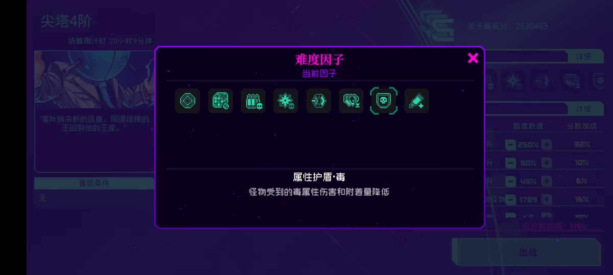 本期因子主要为:冰属性伤害提升,毒盾,这期没有冰盾和电盾。有冰伤加成对梅是极大的提升,没有电盾对紫夜也可以说如鱼得水,这期用紫夜或者梅都可以打出不错的成绩,理论上极限情况下,梅上限更高一些。紫夜理论分数大概为小怪166w左右,boss36击破,理论最高分大概是256w左右。梅理论分数大概为小怪164w左右,boss37击破。理论最高分大概是257w左右。