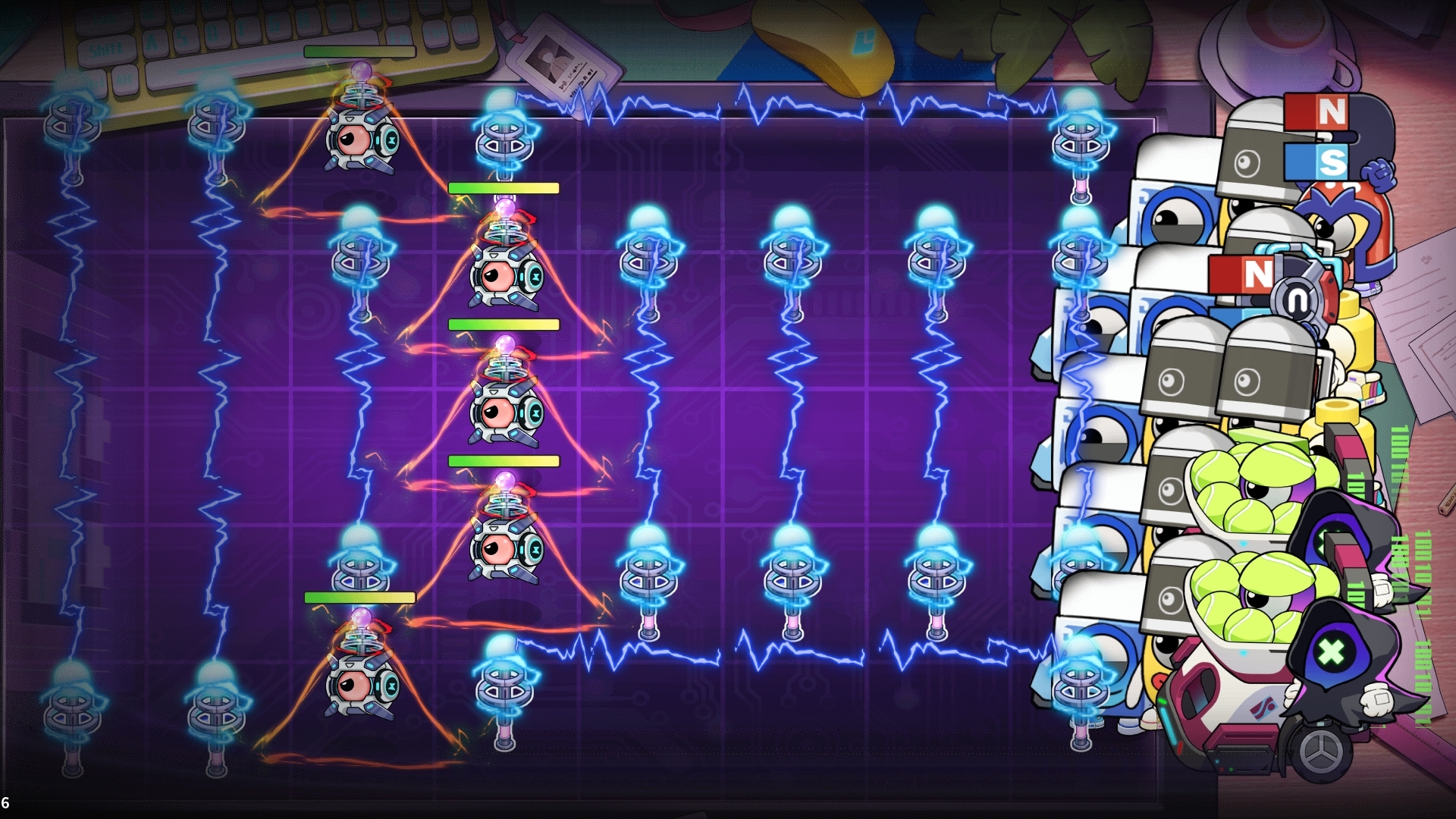 ①关卡会固定出现高危电压球于没有电流的地板,会对周围3×3的所有我方角色造成高额伤害且血量非常厚。风扇、可可/塔菲大招可击退/传送,留下宝贵的无电流格子。