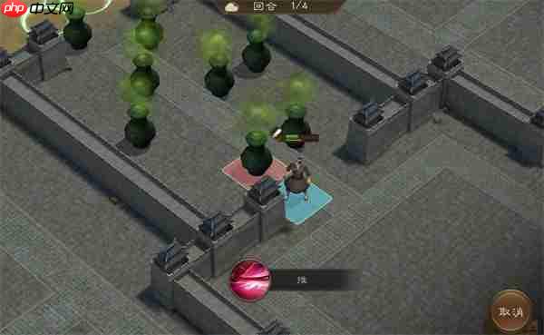 本关核心机制:我方单位拥有普通技能(推动罐子一格)和怒气技能(推动罐子两格),也可通过普攻直接击碎罐子。