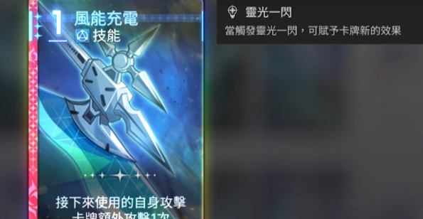 疾风1击(2费):单次高伤害并附带护盾,可与风能充电组合使用;