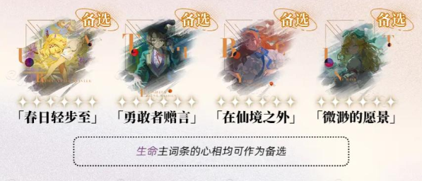 1、备选:春日轻步至、勇敢者赠言、在仙境之外、微渺的愿景;