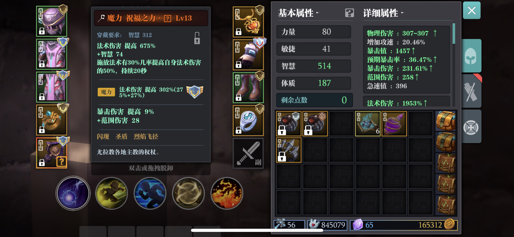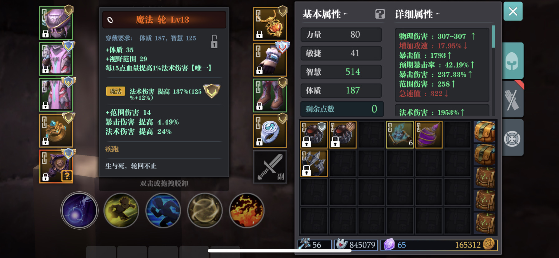 智力点加完剩余的可全部加体质,这样可以最大化发挥轮戒指的伤害同时可以使自己身板更硬,因为圣盾技能就是法术伤害越高盾越厚