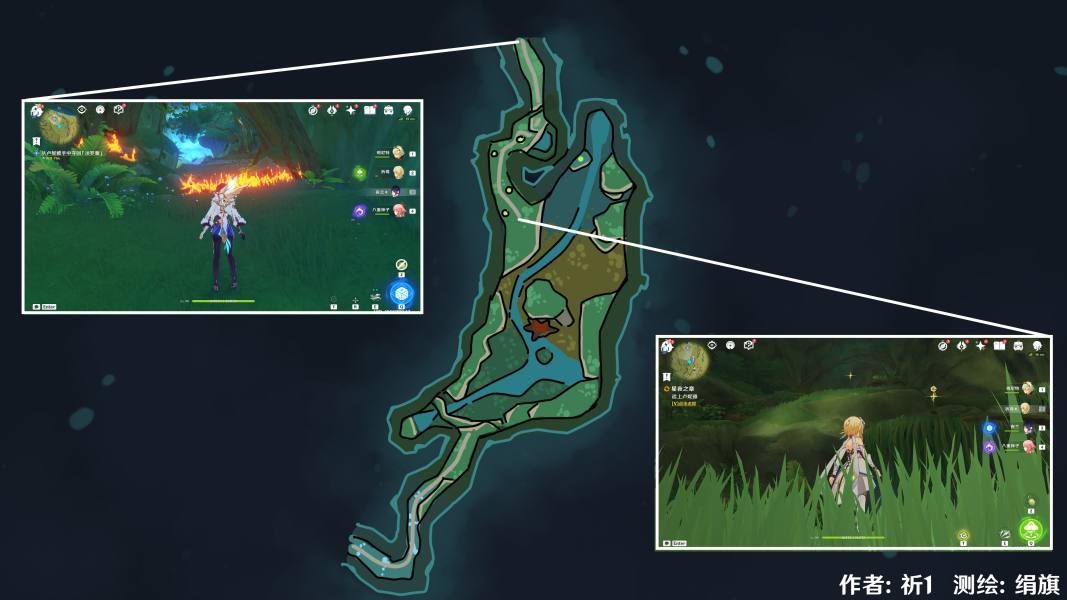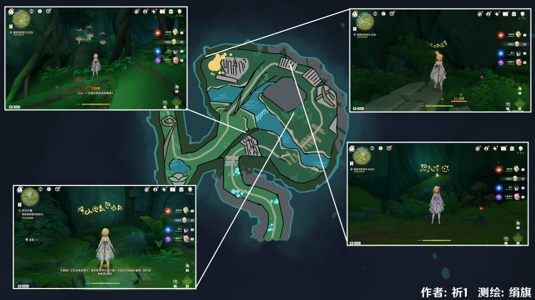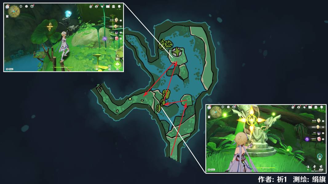 5,我们跟随仙灵,修复这两处的元素方碑,并激活(流程路线如下,包括离开)