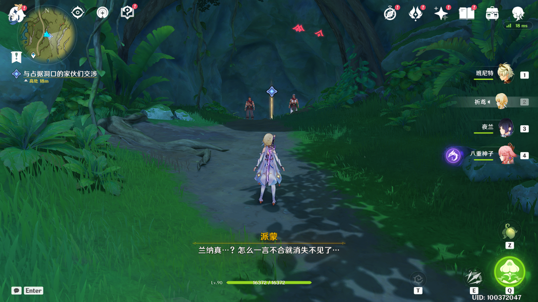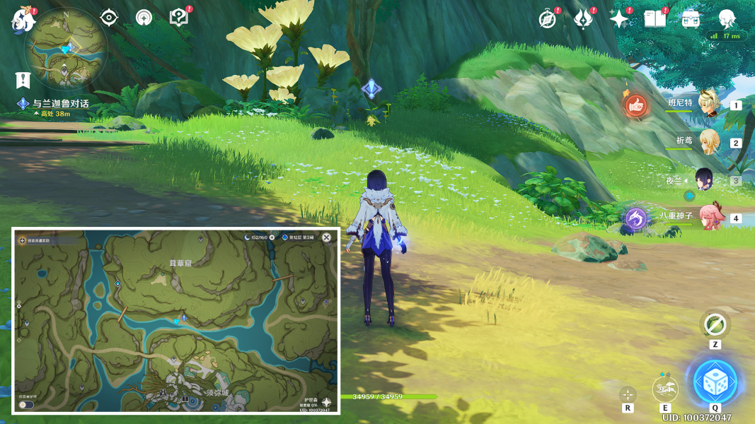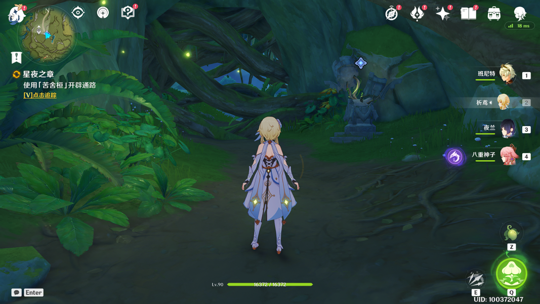 4,之后我们会遇到一个仙灵,全程跟着它就好了(可以用草元素攻击旁边的花蕊,借助四叶印快速移动)