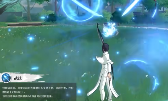 当石田雨龙释放战技以后会直接对着前面的敌人射出多支灵子箭,箭矢不仅能够造成伤害还能获得1曾的灭却印记,此外该技能最高还能够给石田雨龙提供6点的战场技能量。