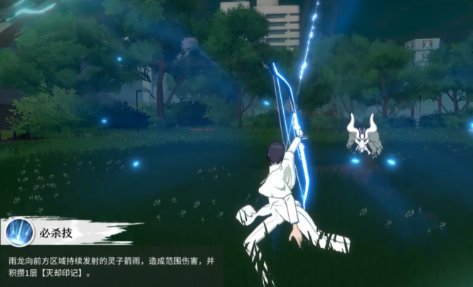 雨龙的必杀技就是不断的对敌人所在的区域内射出灵子箭雨,箭雨有着极为广阔的攻击范围,只要在箭雨的攻击范围内敌人都会受到伤害,还能积攒灭却印记。