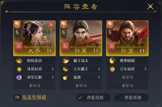 技能选择上比较宽松,孙坚和孙策的是围绕碎甲进行联动,所以携带技能上主要围绕buff的覆盖率来即可。