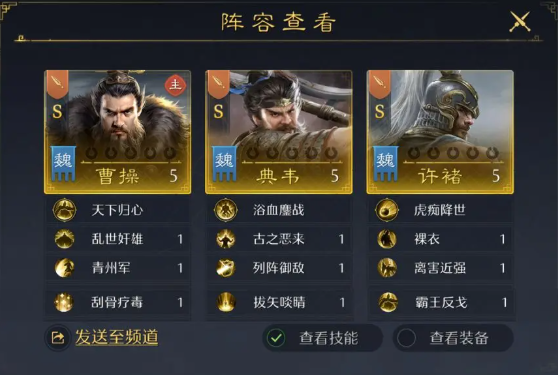 战法上以突击战法为主即可,虎豹骑可以极大的提高爆发,也可以换成【仁治武功】【刮骨疗毒】等技能。