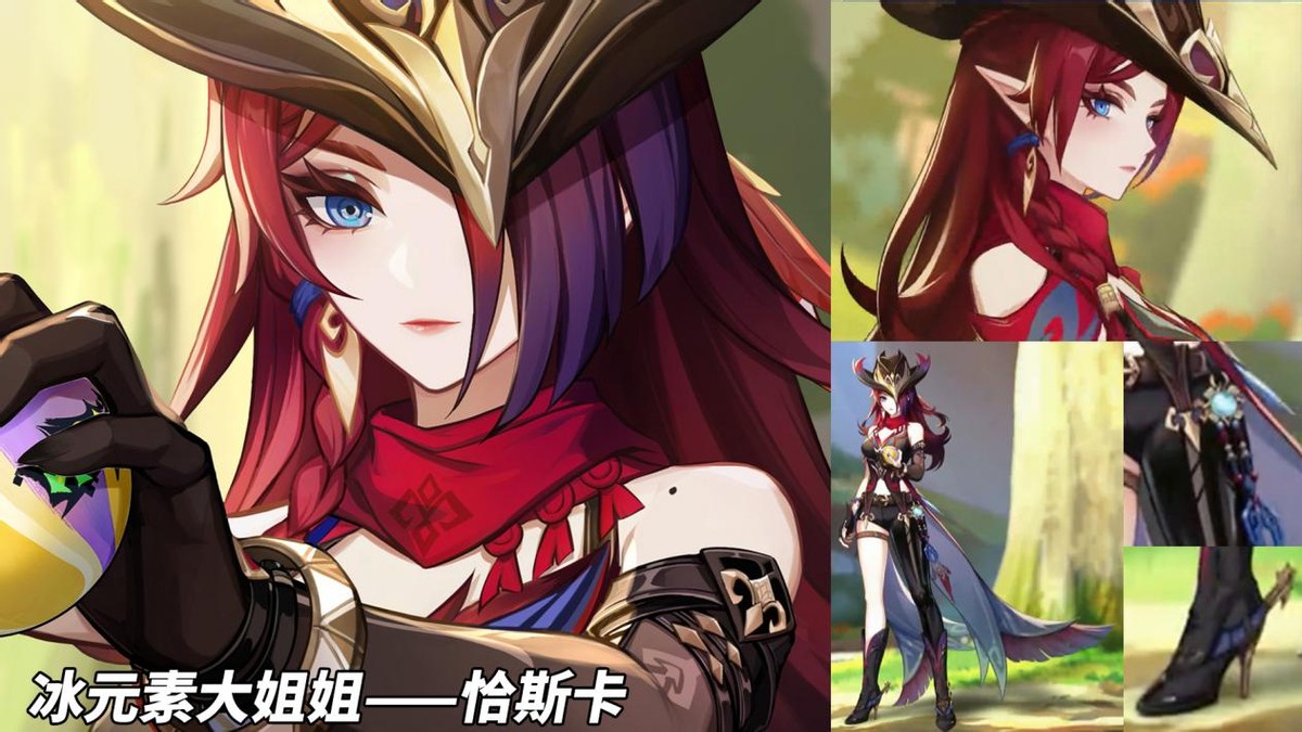 这帽子+靴子根部的马刺,我就说嘛,纳塔这个题材怎么会少了牛仔的身影!推测,恰斯卡则是那种游离于部族之外的自由人,非常有可能在未来冲突中起到关键作用。其神之眼则是直接扣在腰带上,目前这远景呈现浅蓝色,应该是冰元素角色。
