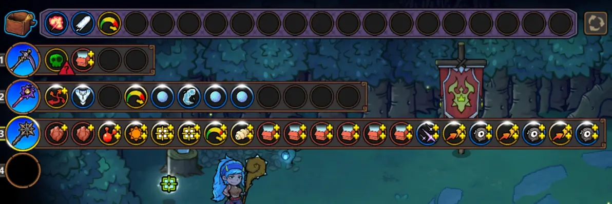3.将法杖中的1个克总放到另外一根法杖上,原来那根法杖所有法术都可以拆除,清理出来的格子填充尽量多的储魔之匣,比如下图