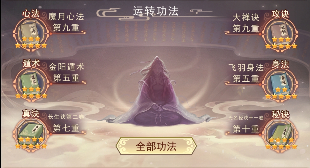 主用的法术拉满,其他8星心法升到八重,2~7星心法攻诀均升到七重,真诀酌情升级(当血魔是吧)
