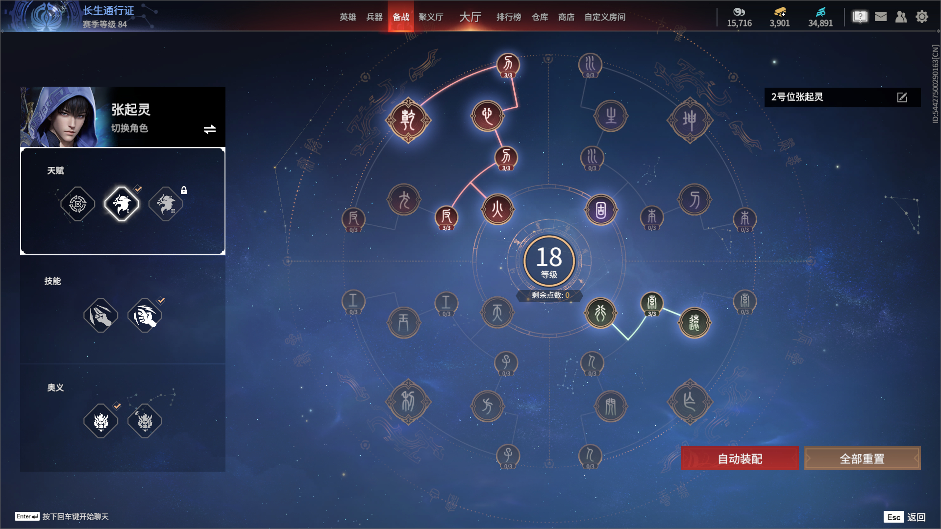 因为我推荐定位是2号位张起灵,那么技能就带F2V1,对应的天赋就是这一套