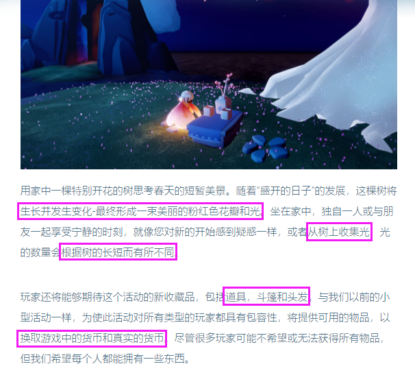 5.一个细节 花树上飘落的光也是花瓣形状的 太美了 拿来拍照就是天然滤镜 不过遗憾的是和情人节的粉遇境错开了 真心希望tgc能考虑一下让粉遇境再延长几天 这样遇境就更有花海的感觉了